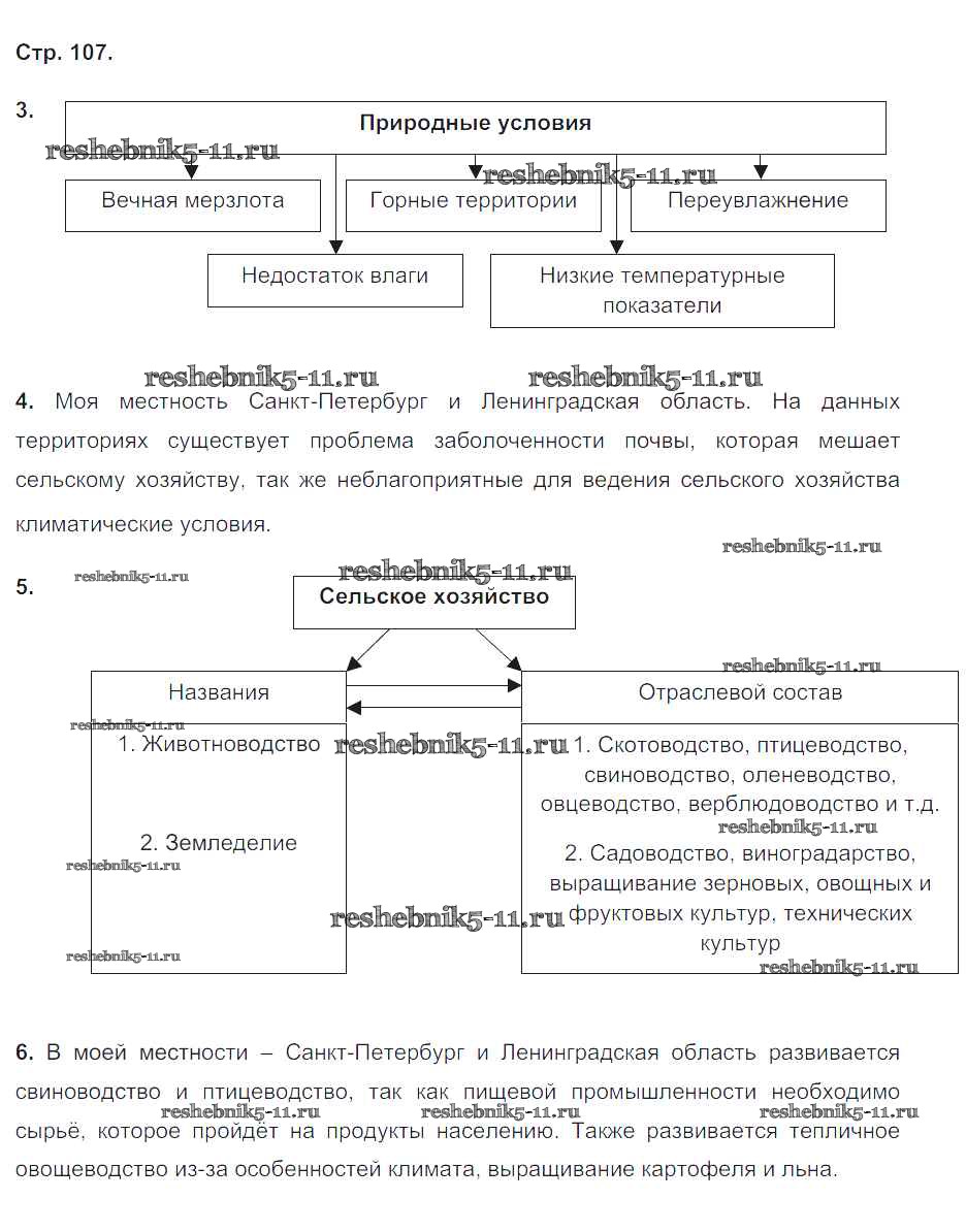 Готовая домашняя работа с ответами по Географии за 8 класс Баринова, Дронов Рабочая тетрадь УМК Дрофа 2017 ФГОС - Страницы 107