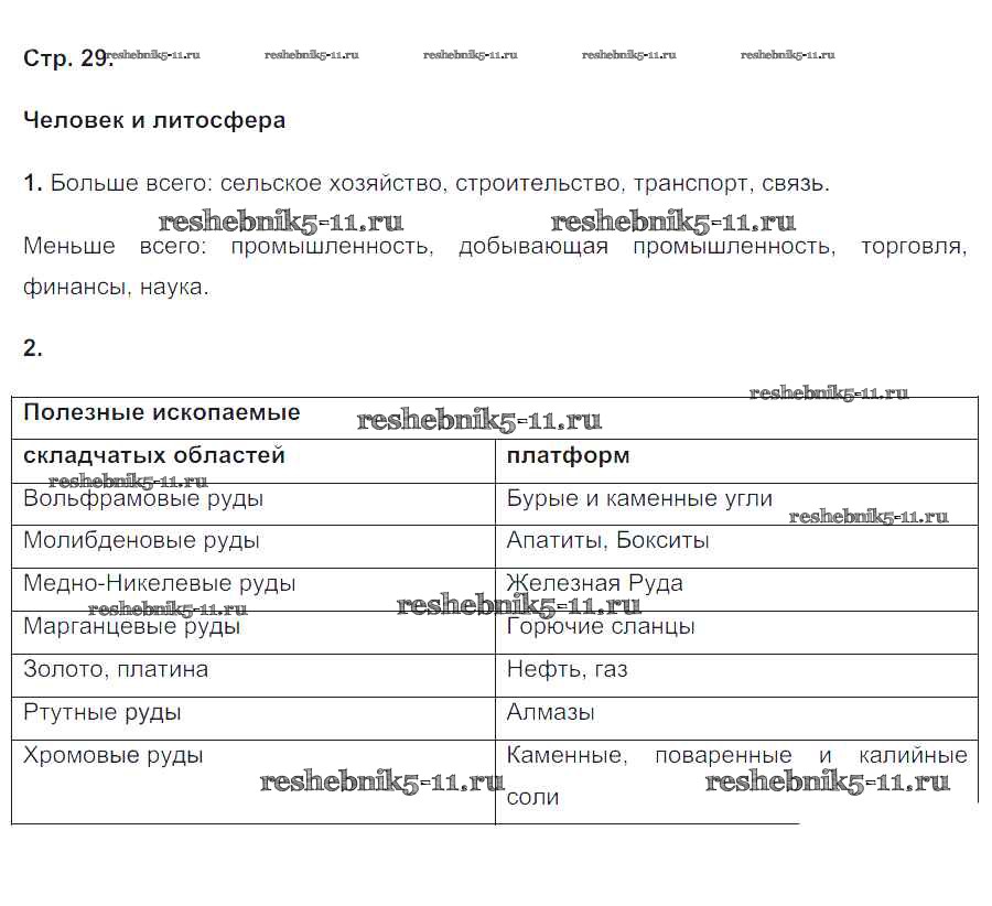 Готовая домашняя работа с ответами по Географии за 8 класс Баринова, Дронов Рабочая тетрадь УМК Дрофа 2017 ФГОС - Страницы 29