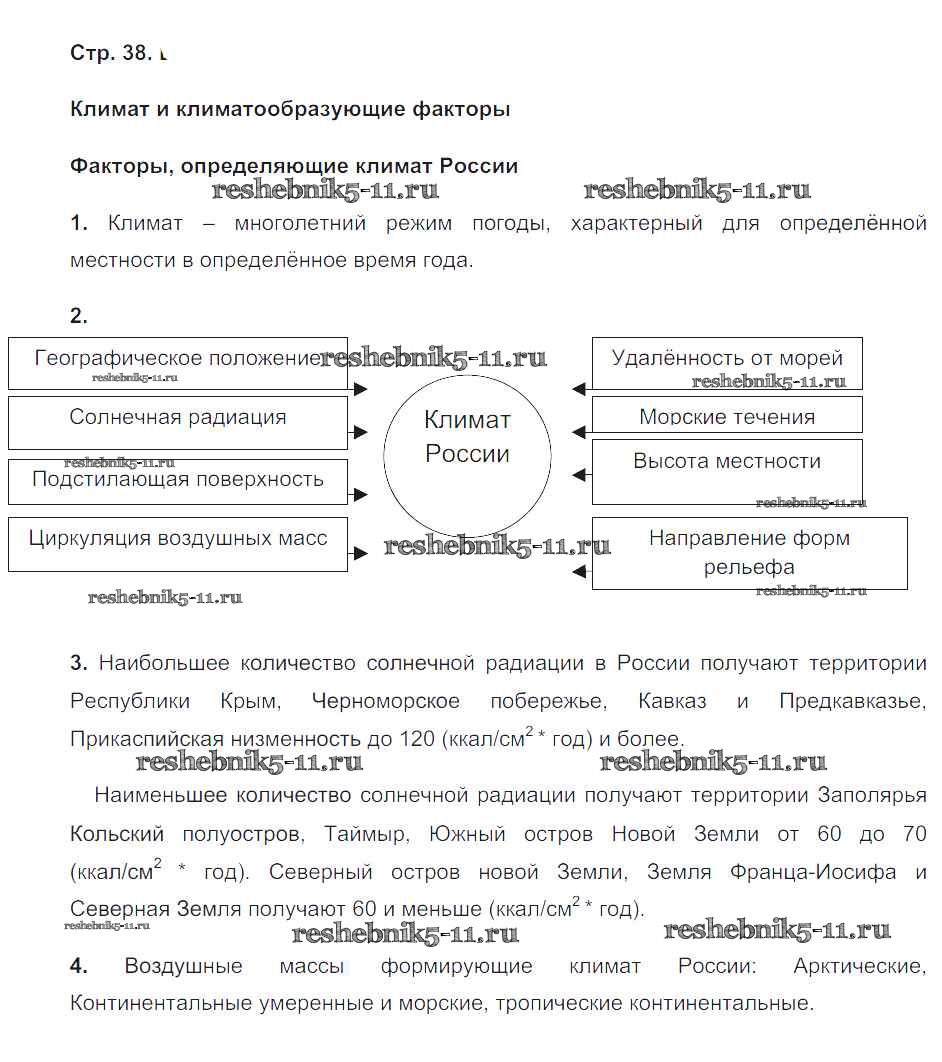 Готовая домашняя работа с ответами по Географии за 8 класс Баринова, Дронов Рабочая тетрадь УМК Дрофа 2017 ФГОС - Страницы 38