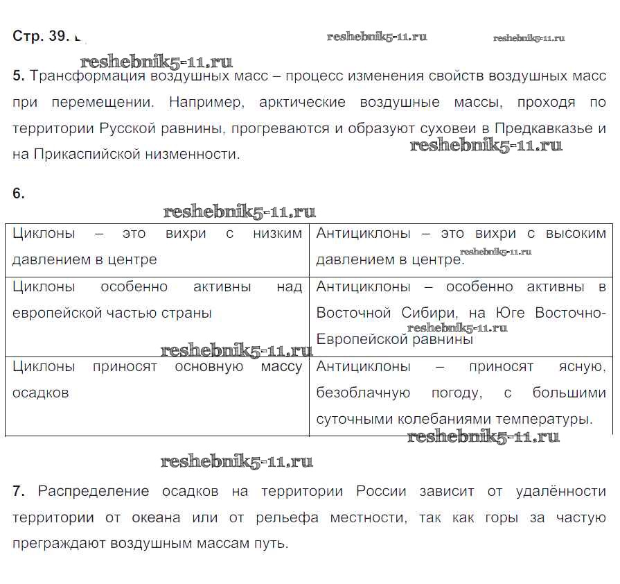 Готовая домашняя работа с ответами по Географии за 8 класс Баринова, Дронов Рабочая тетрадь УМК Дрофа 2017 ФГОС - Страницы 39