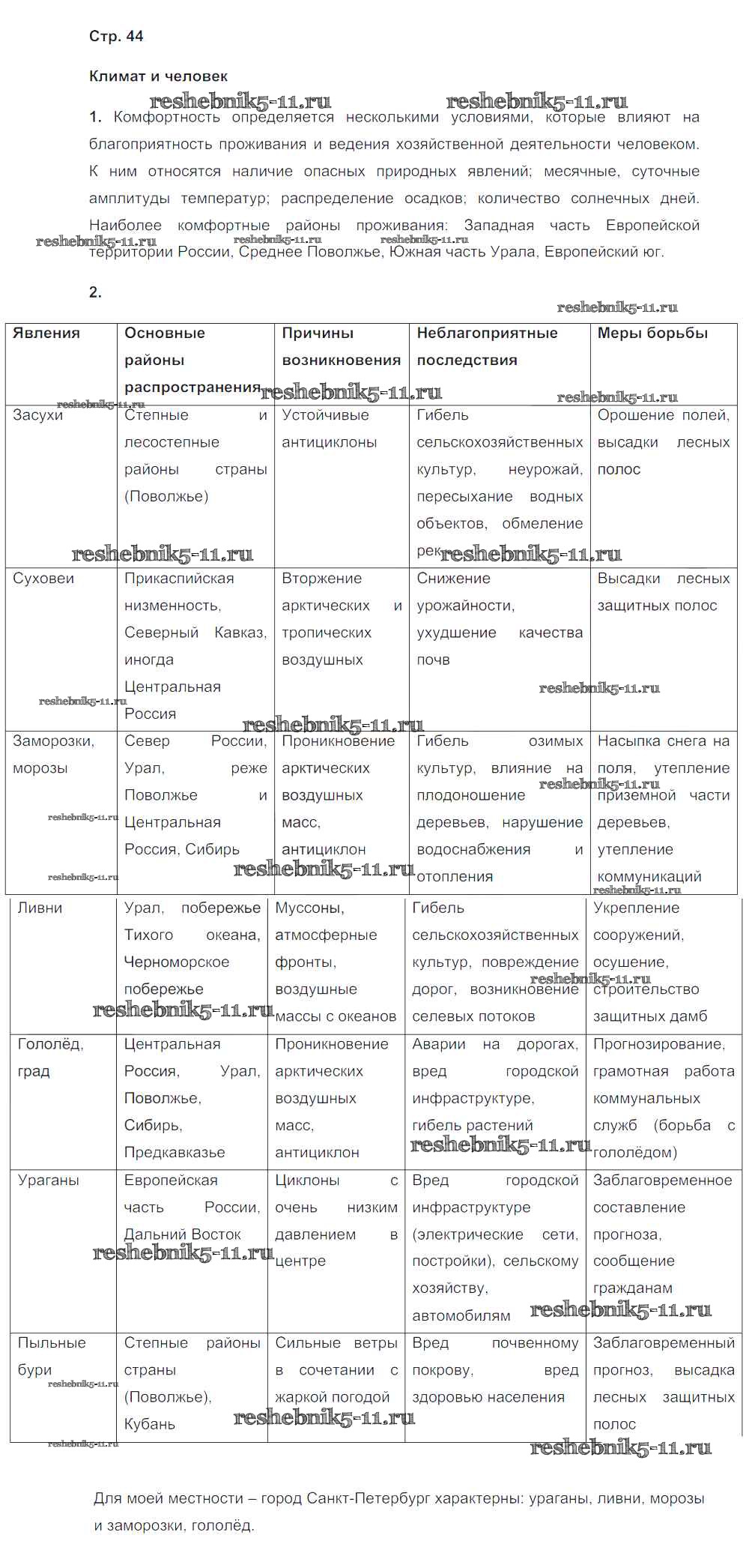 Готовая домашняя работа с ответами по Географии за 8 класс Баринова, Дронов Рабочая тетрадь УМК Дрофа 2017 ФГОС - Страницы 44