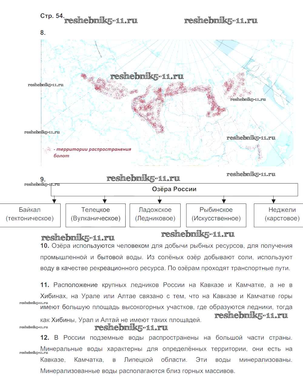 Готовая домашняя работа с ответами по Географии за 8 класс Баринова, Дронов Рабочая тетрадь УМК Дрофа 2017 ФГОС - Страницы 54
