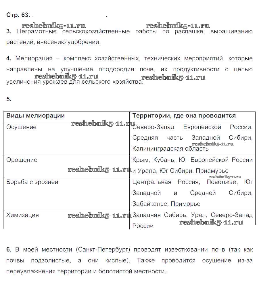 Готовая домашняя работа с ответами по Географии за 8 класс Баринова, Дронов Рабочая тетрадь УМК Дрофа 2017 ФГОС - Страницы 63