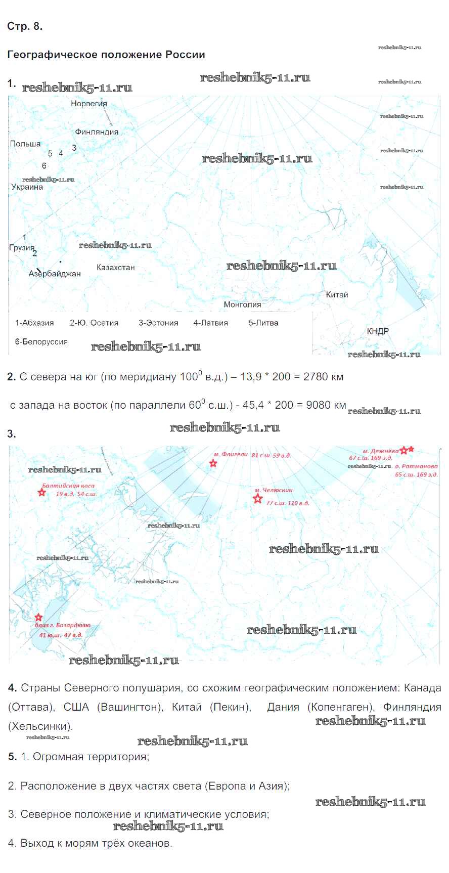Готовая домашняя работа с ответами по Географии за 8 класс Баринова, Дронов Рабочая тетрадь УМК Дрофа 2017 ФГОС - Страницы 8