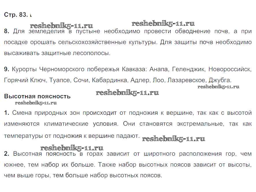 Готовая домашняя работа с ответами по Географии за 8 класс Баринова, Дронов Рабочая тетрадь УМК Дрофа 2017 ФГОС - Страницы 83