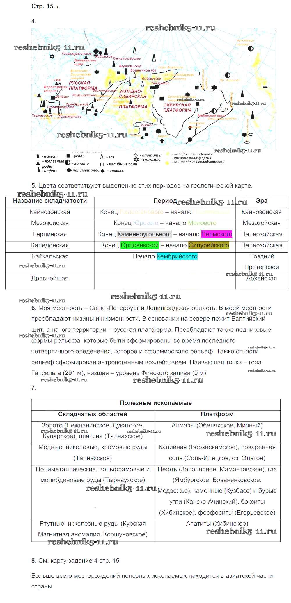 Готовая домашняя работа с ответами по Географии за 8 класс Баринова, Суслов Рабочая тетрадь УМК Экзамен 2019 ФГОС - Страницы 15