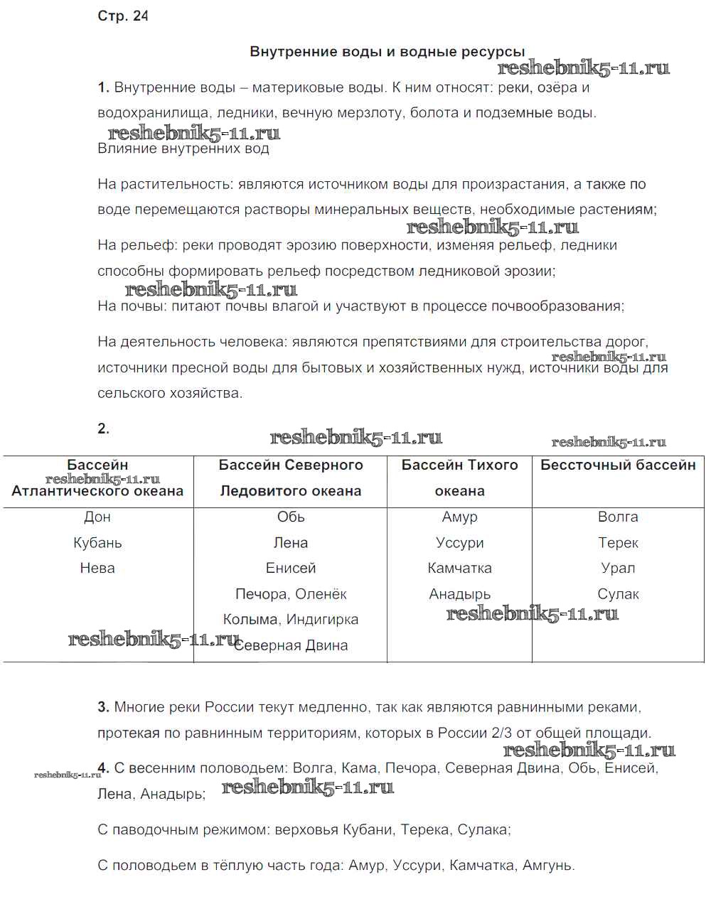 Готовая домашняя работа с ответами по Географии за 8 класс Баринова, Суслов Рабочая тетрадь УМК Экзамен 2019 ФГОС - Страницы 24