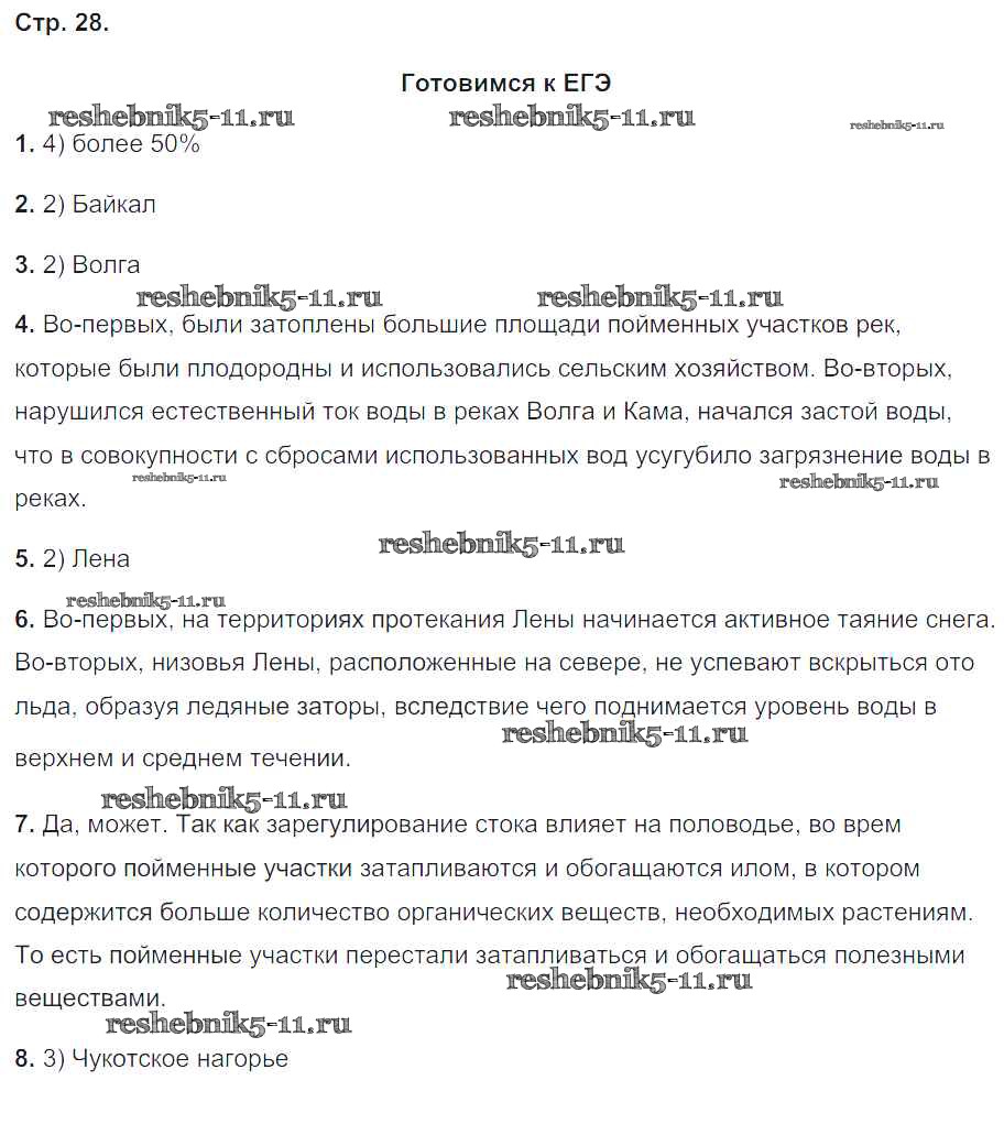 Готовая домашняя работа с ответами по Географии за 8 класс Баринова, Суслов Рабочая тетрадь УМК Экзамен 2019 ФГОС - Страницы 28