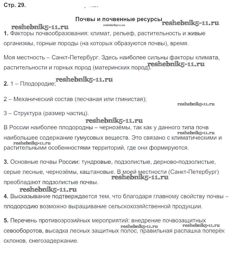 Готовая домашняя работа с ответами по Географии за 8 класс Баринова, Суслов Рабочая тетрадь УМК Экзамен 2019 ФГОС - Страницы 29