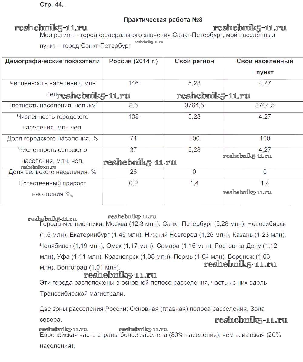 Готовая домашняя работа с ответами по Географии за 8 класс Баринова, Суслов Рабочая тетрадь УМК Экзамен 2019 ФГОС - Страницы 44