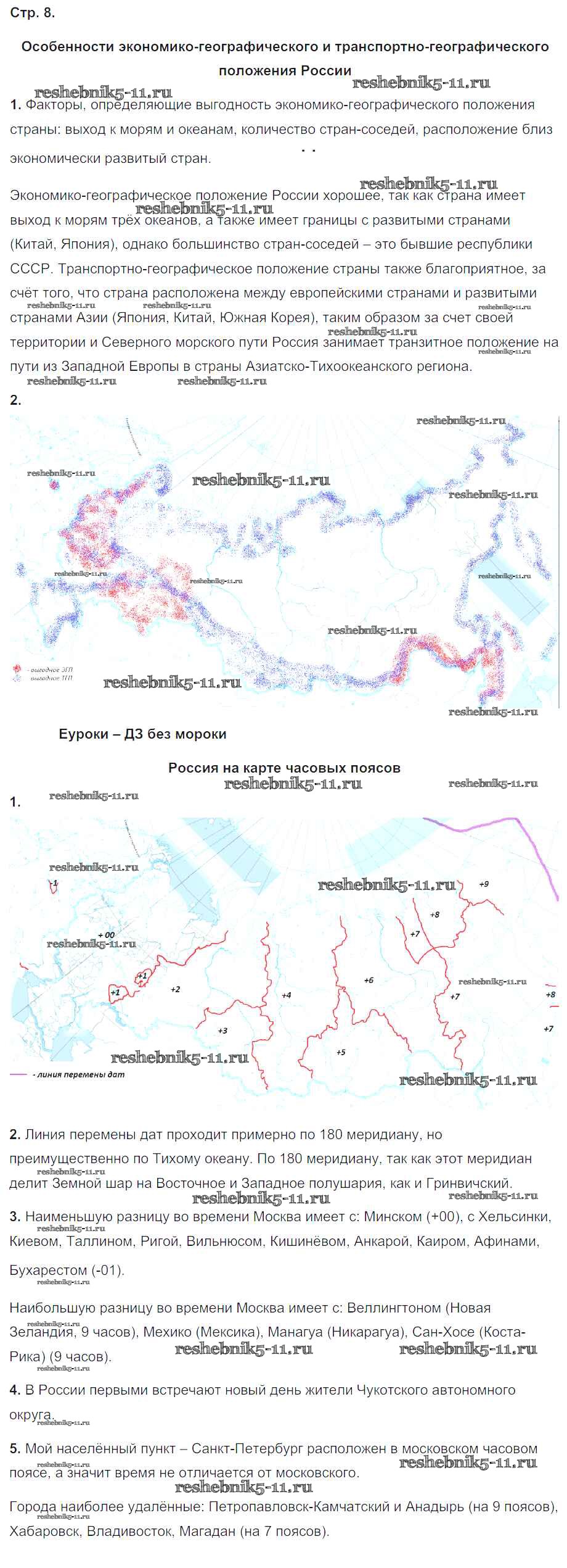 Готовая домашняя работа с ответами по Географии за 8 класс Баринова, Суслов Рабочая тетрадь УМК Экзамен 2019 ФГОС - Страницы 8