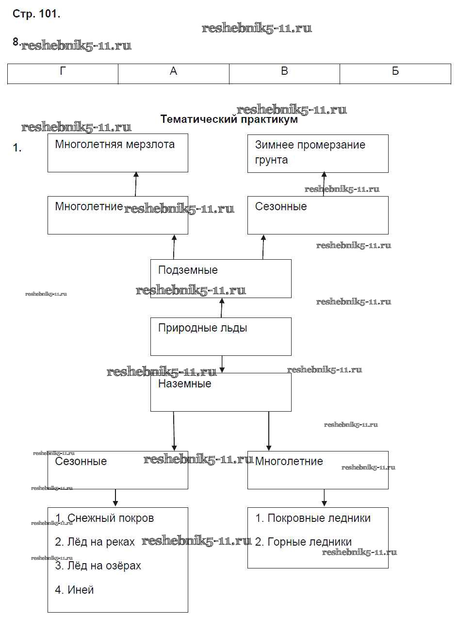 Готовая домашняя работа с ответами по Географии за 8 класс Домогацких Рабочая тетрадь Инновационная школа Часть 1, 2 Русское слово 2017 ФГОС - Часть 1. Страницы 101