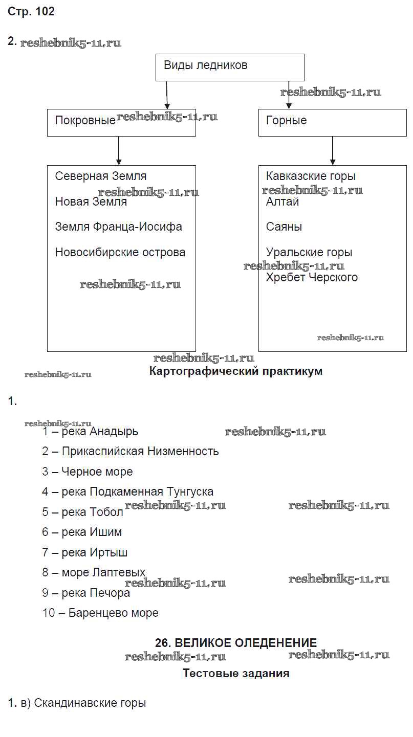 Готовая домашняя работа с ответами по Географии за 8 класс Домогацких Рабочая тетрадь Инновационная школа Часть 1, 2 Русское слово 2017 ФГОС - Часть 1. Страницы 102