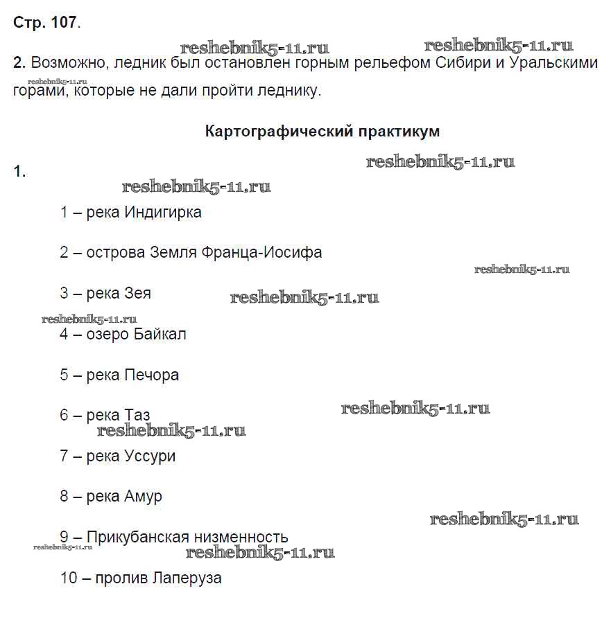Готовая домашняя работа с ответами по Географии за 8 класс Домогацких Рабочая тетрадь Инновационная школа Часть 1, 2 Русское слово 2017 ФГОС - Часть 1. Страницы 107