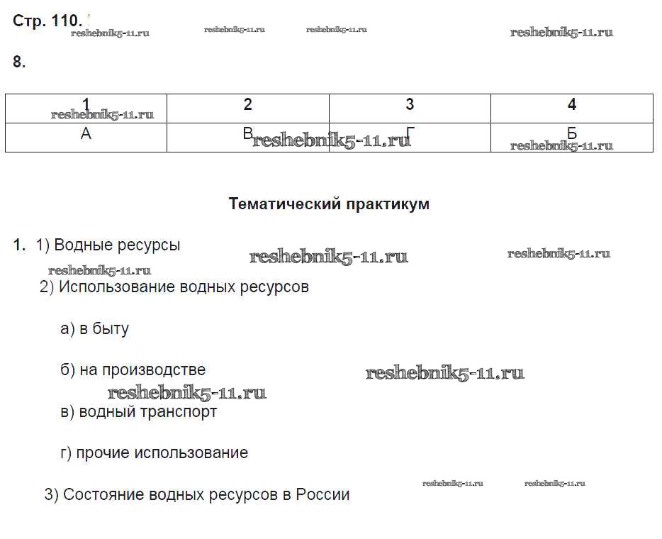 Готовая домашняя работа с ответами по Географии за 8 класс Домогацких Рабочая тетрадь Инновационная школа Часть 1, 2 Русское слово 2017 ФГОС - Часть 1. Страницы 110