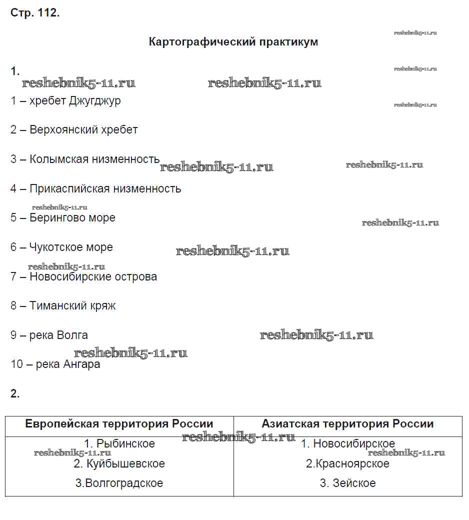 Готовая домашняя работа с ответами по Географии за 8 класс Домогацких Рабочая тетрадь Инновационная школа Часть 1, 2 Русское слово 2017 ФГОС - Часть 1. Страницы 112