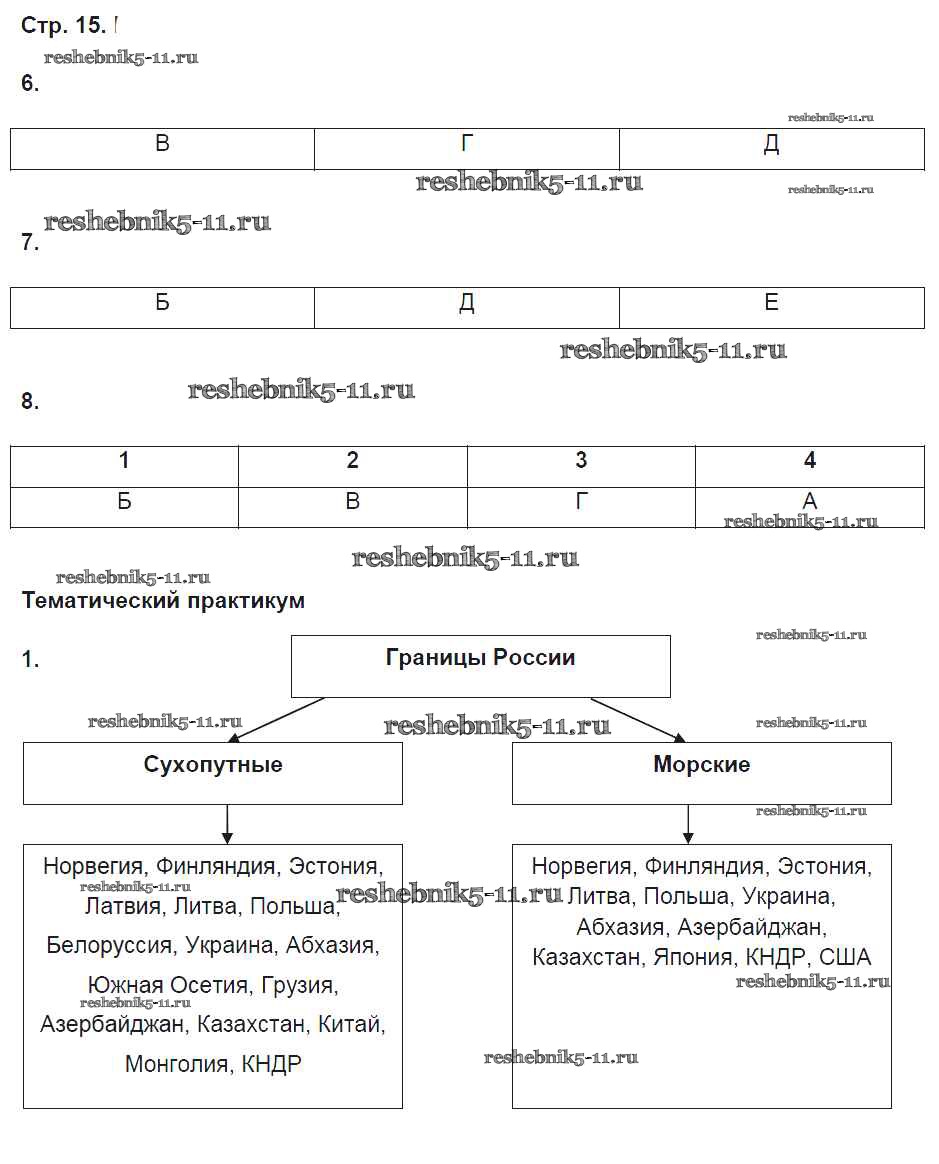 Готовая домашняя работа с ответами по Географии за 8 класс Домогацких Рабочая тетрадь Инновационная школа Часть 1, 2 Русское слово 2017 ФГОС - Часть 1. Страницы 15
