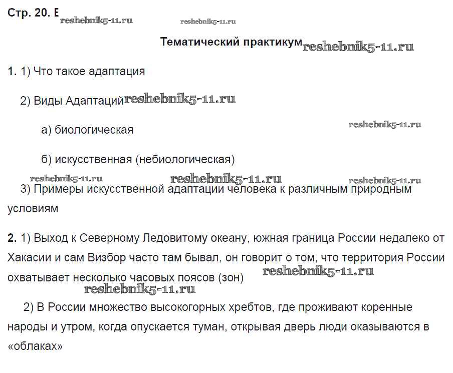 Готовая домашняя работа с ответами по Географии за 8 класс Домогацких Рабочая тетрадь Инновационная школа Часть 1, 2 Русское слово 2017 ФГОС - Часть 1. Страницы 20