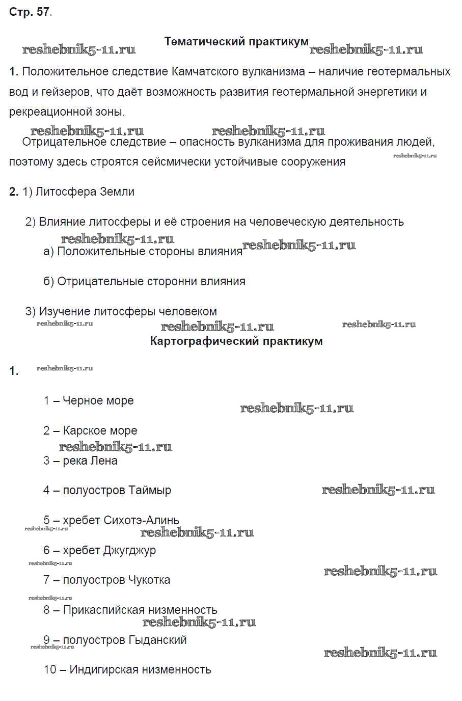 Готовая домашняя работа с ответами по Географии за 8 класс Домогацких Рабочая тетрадь Инновационная школа Часть 1, 2 Русское слово 2017 ФГОС - Часть 1. Страницы 57