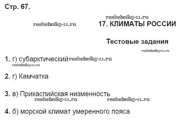 Готовая домашняя работа с ответами по Географии за 8 класс Домогацких Рабочая тетрадь Инновационная школа Часть 1, 2 Русское слово 2017 ФГОС - Часть 1. Страницы 67