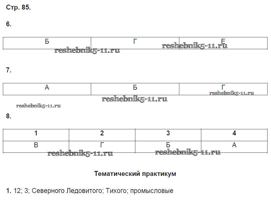 Готовая домашняя работа с ответами по Географии за 8 класс Домогацких Рабочая тетрадь Инновационная школа Часть 1, 2 Русское слово 2017 ФГОС - Часть 1. Страницы 85