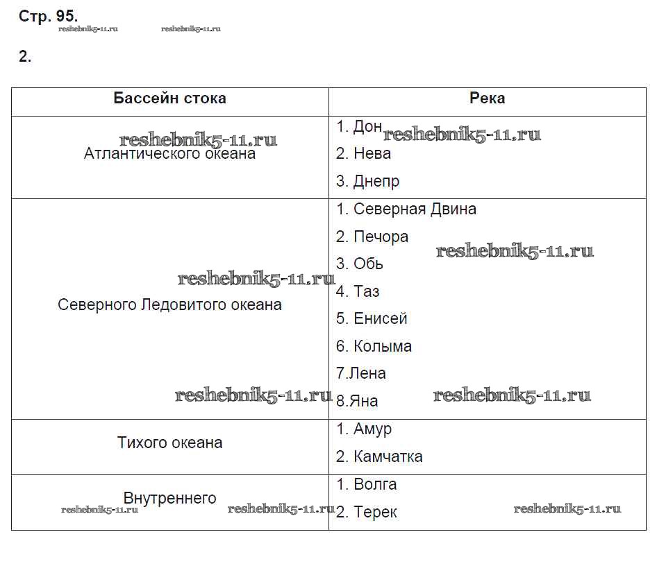 Готовая домашняя работа с ответами по Географии за 8 класс Домогацких Рабочая тетрадь Инновационная школа Часть 1, 2 Русское слово 2017 ФГОС - Часть 1. Страницы 95
