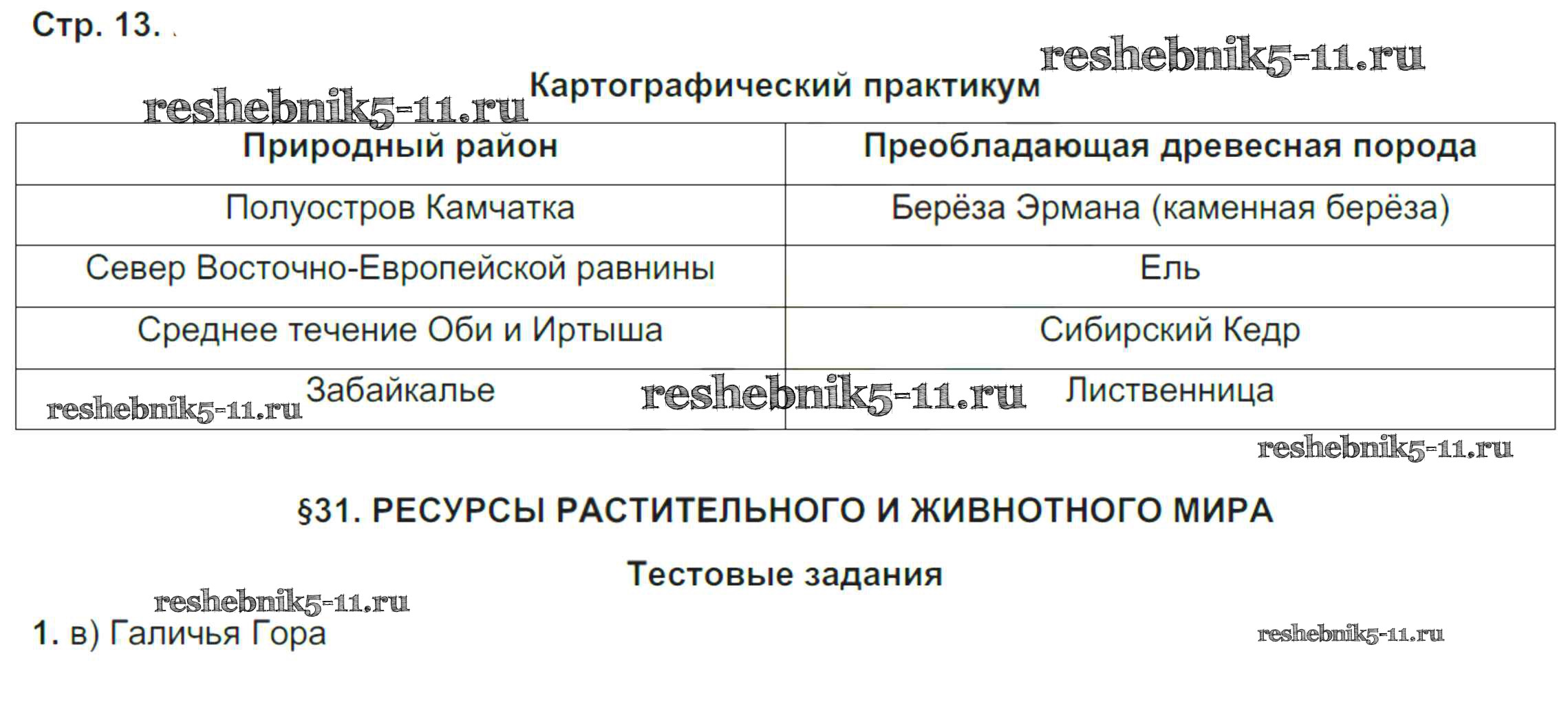 Готовая домашняя работа с ответами по Географии за 8 класс Домогацких Рабочая тетрадь Инновационная школа Часть 1, 2 Русское слово 2017 ФГОС - Часть 2. Страницы 13