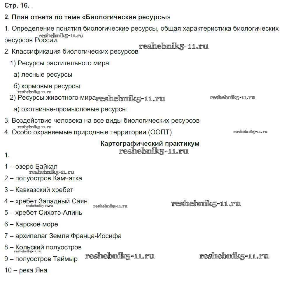 Готовая домашняя работа с ответами по Географии за 8 класс Домогацких Рабочая тетрадь Инновационная школа Часть 1, 2 Русское слово 2017 ФГОС - Часть 2. Страницы 16