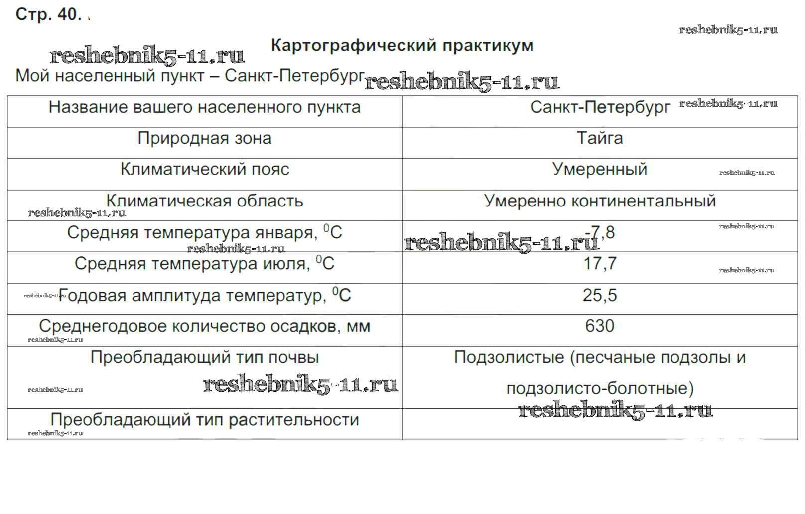 Готовая домашняя работа с ответами по Географии за 8 класс Домогацких Рабочая тетрадь Инновационная школа Часть 1, 2 Русское слово 2017 ФГОС - Часть 2. Страницы 40