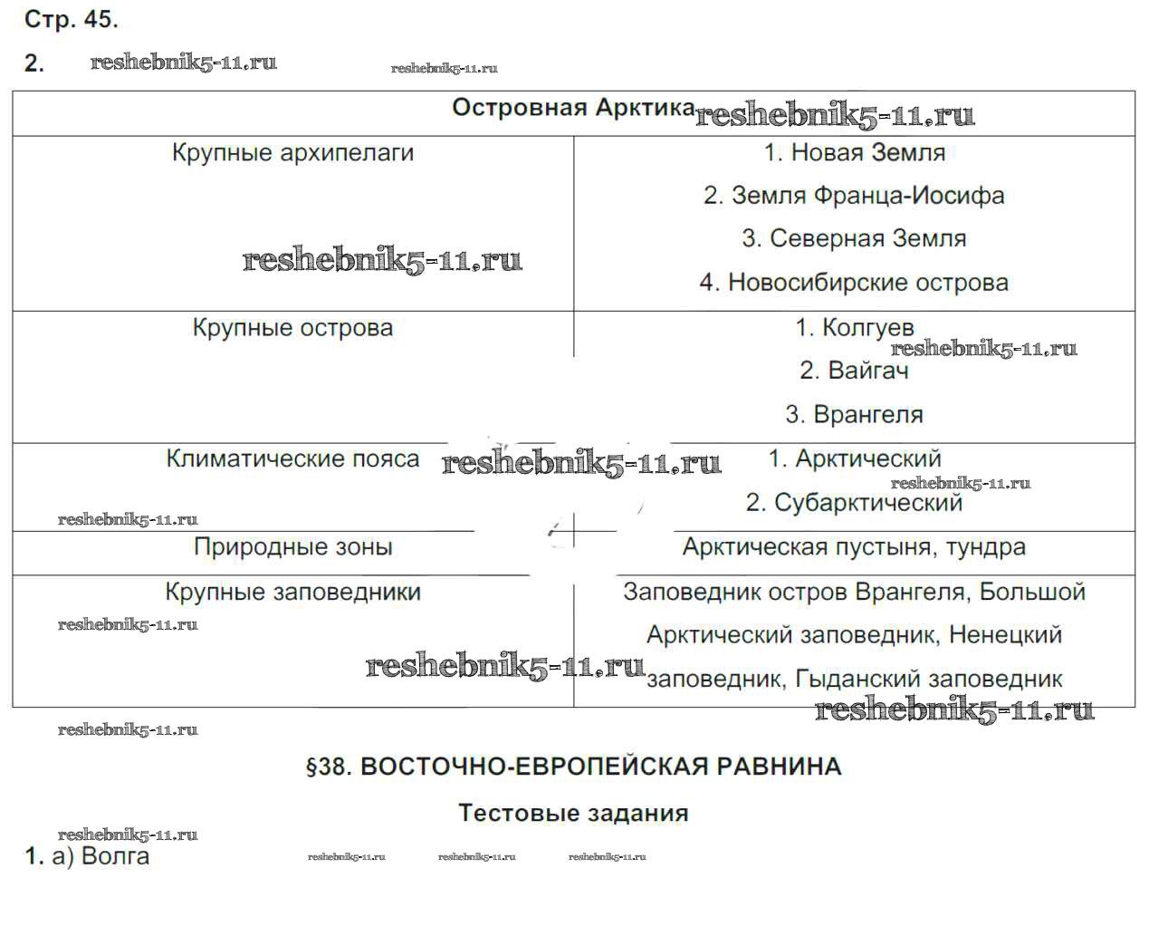 Готовая домашняя работа с ответами по Географии за 8 класс Домогацких Рабочая тетрадь Инновационная школа Часть 1, 2 Русское слово 2017 ФГОС - Часть 2. Страницы 45