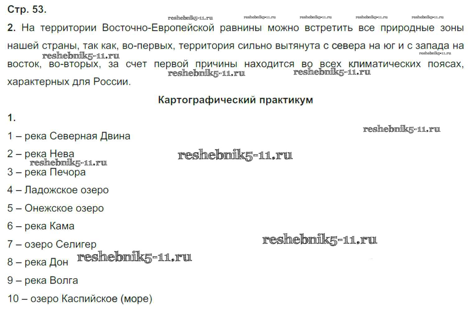 Готовая домашняя работа с ответами по Географии за 8 класс Домогацких Рабочая тетрадь Инновационная школа Часть 1, 2 Русское слово 2017 ФГОС - Часть 2. Страницы 53