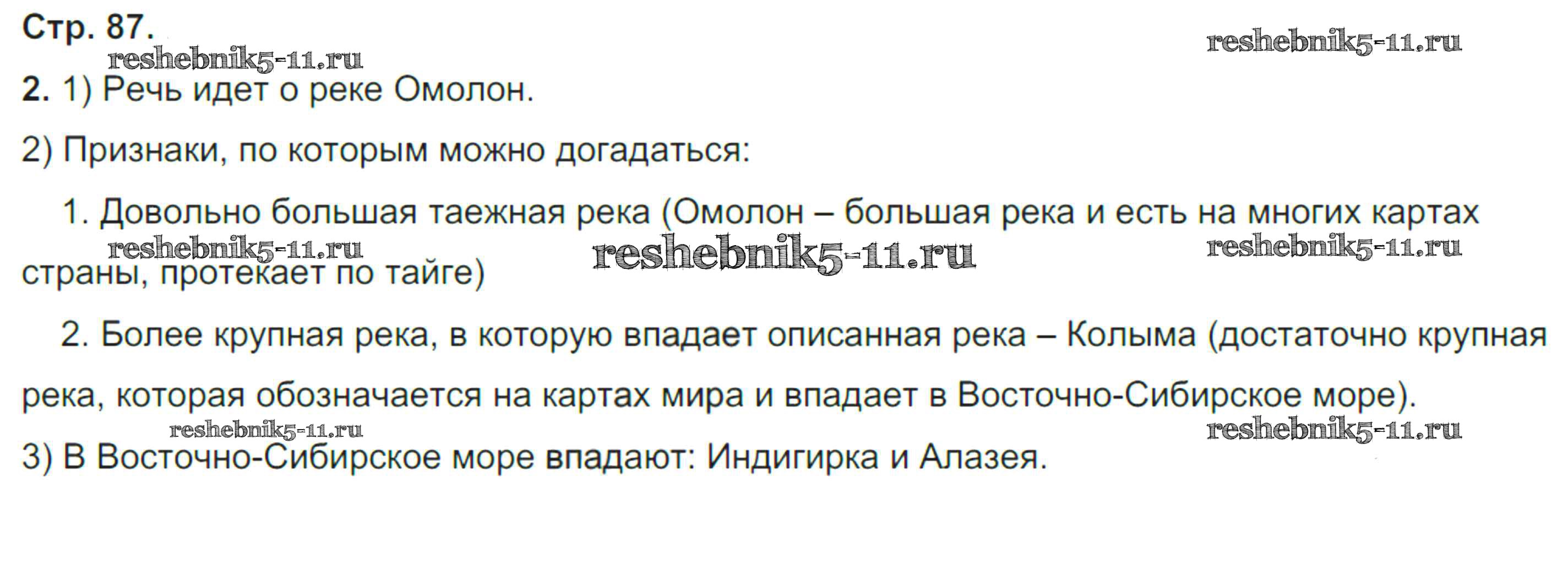 Готовая домашняя работа с ответами по Географии за 8 класс Домогацких Рабочая тетрадь Инновационная школа Часть 1, 2 Русское слово 2017 ФГОС - Часть 2. Страницы 87