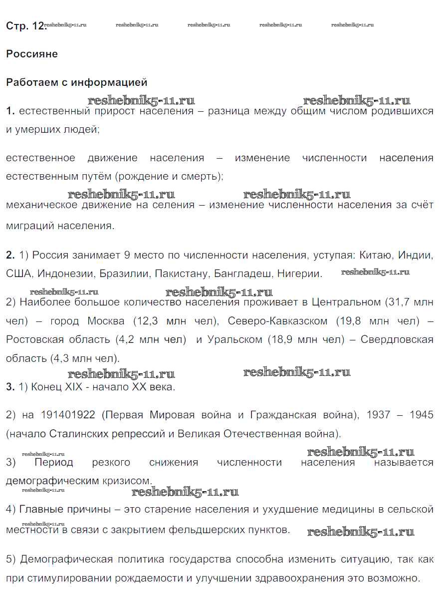 Готовая домашняя работа с ответами по Географии за 8 класс Николина Мой тренажёр Полярная звезда Просвещение 2016 ФГОС - Страницы 12
