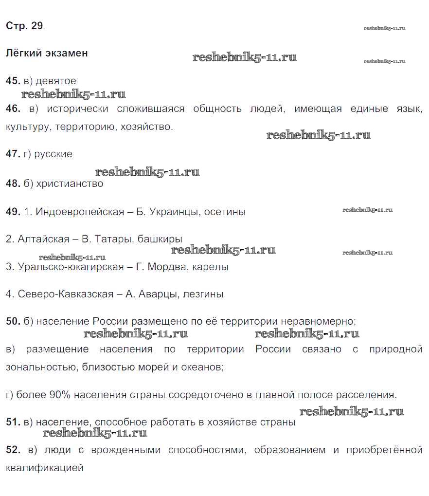 Готовая домашняя работа с ответами по Географии за 8 класс Николина Мой тренажёр Полярная звезда Просвещение 2016 ФГОС - Страницы 29