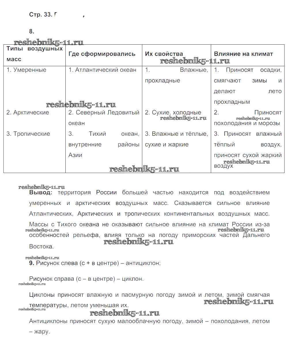 Готовая домашняя работа с ответами по Географии за 8 класс Николина Мой тренажёр Полярная звезда Просвещение 2016 ФГОС - Страницы 33