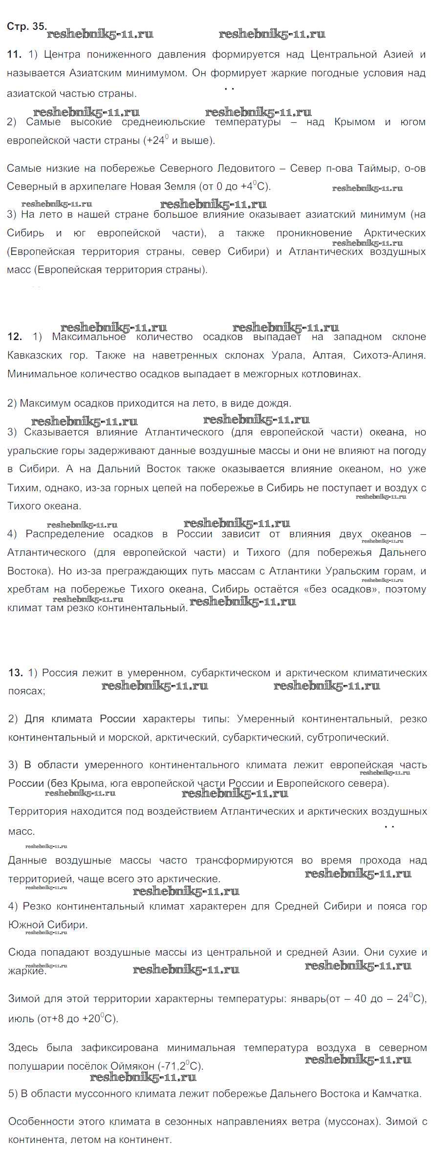 Готовая домашняя работа с ответами по Географии за 8 класс Николина Мой тренажёр Полярная звезда Просвещение 2016 ФГОС - Страницы 35