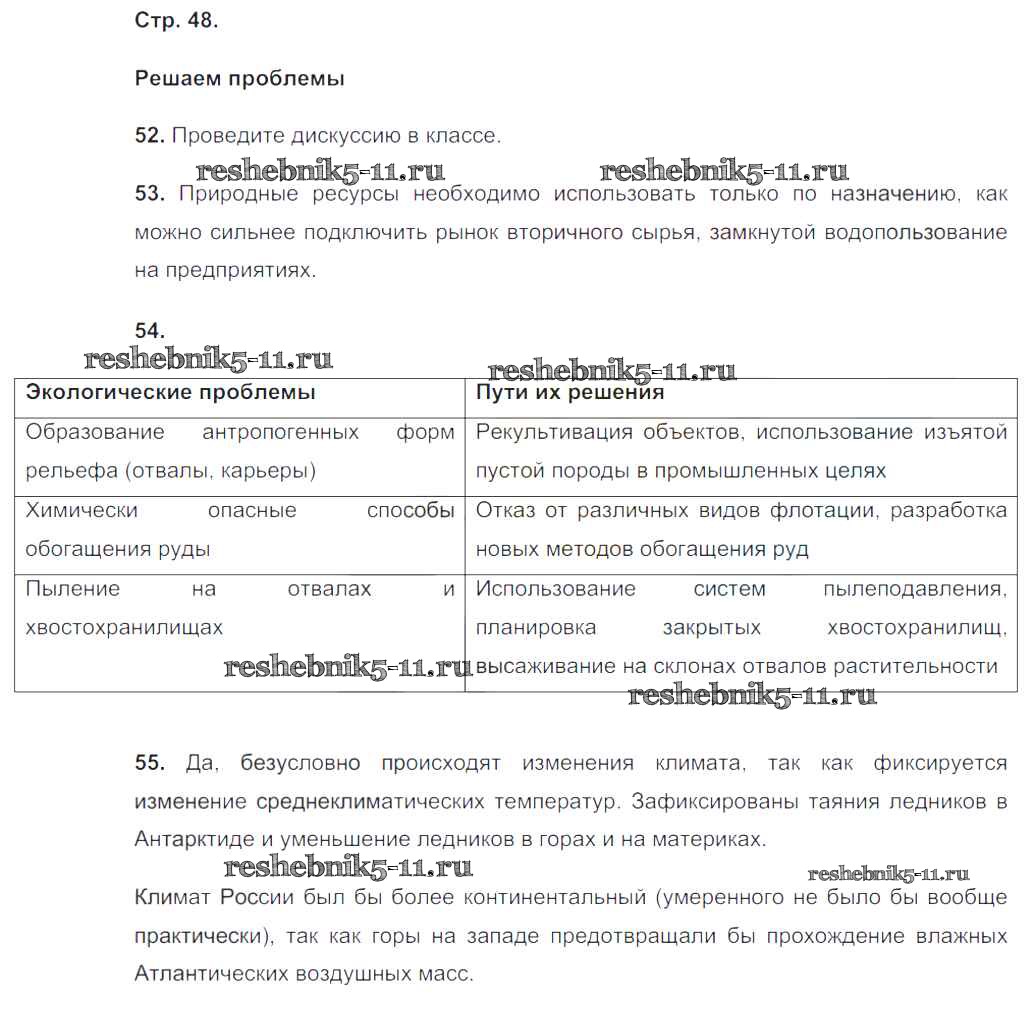 Готовая домашняя работа с ответами по Географии за 8 класс Николина Мой тренажёр Полярная звезда Просвещение 2016 ФГОС - Страницы 48