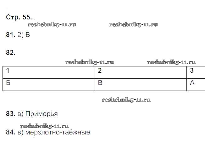 Готовая домашняя работа с ответами по Географии за 8 класс Николина Мой тренажёр Полярная звезда Просвещение 2016 ФГОС - Страницы 55