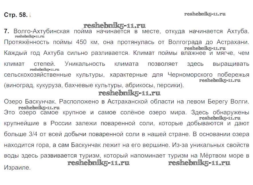 Готовая домашняя работа с ответами по Географии за 8 класс Николина Мой тренажёр Полярная звезда Просвещение 2016 ФГОС - Страницы 58