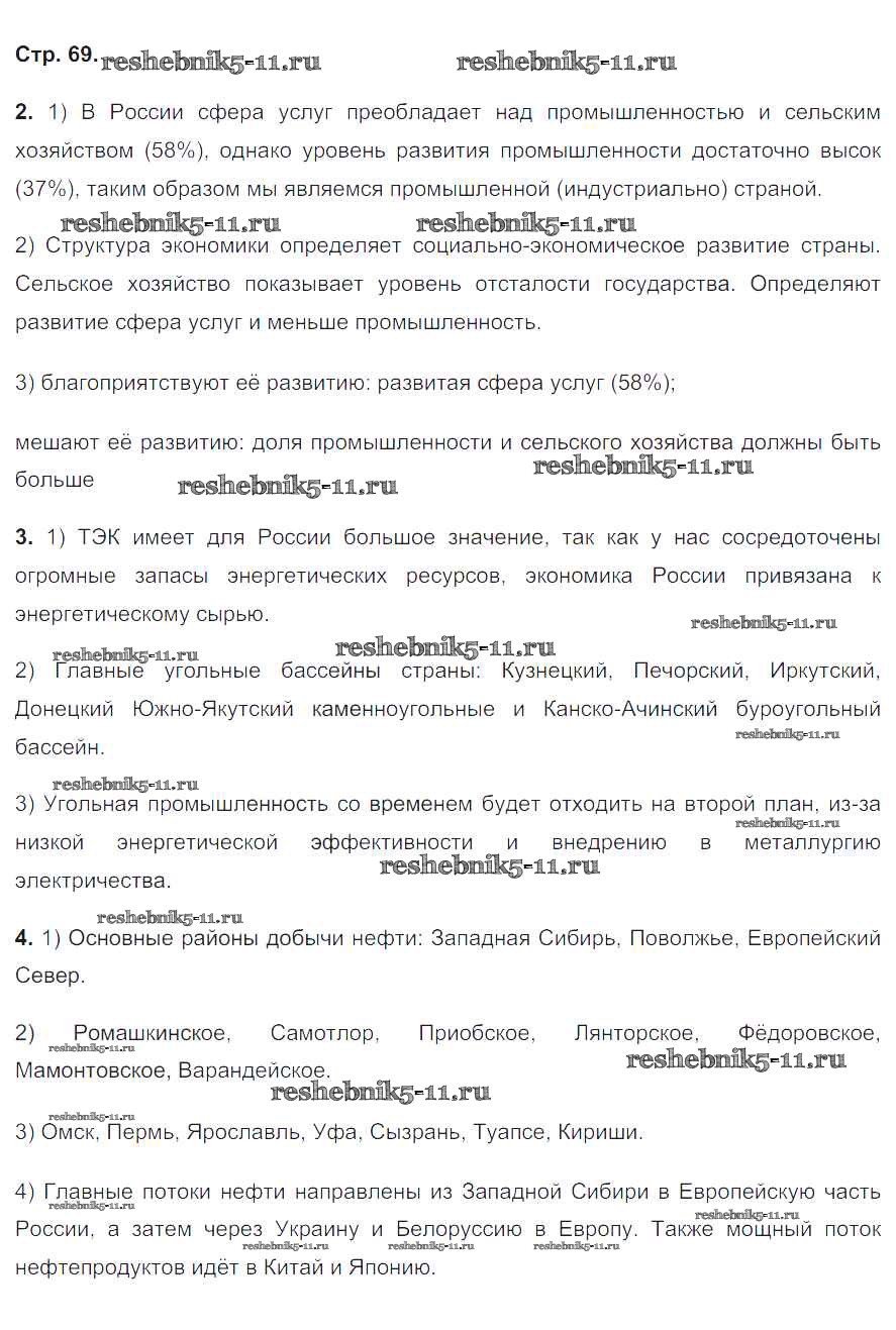 Готовая домашняя работа с ответами по Географии за 8 класс Николина Мой тренажёр Полярная звезда Просвещение 2016 ФГОС - Страницы 69
