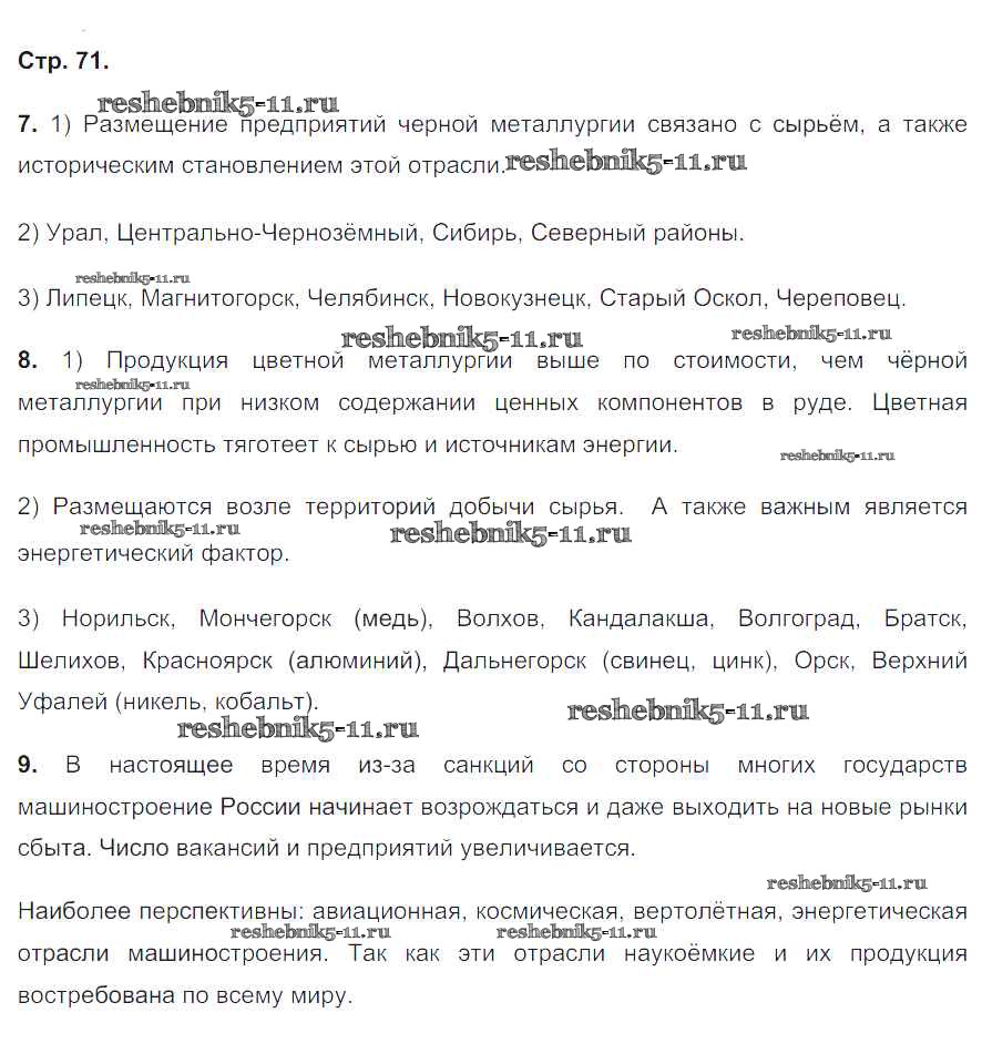 Готовая домашняя работа с ответами по Географии за 8 класс Николина Мой тренажёр Полярная звезда Просвещение 2016 ФГОС - Страницы 71