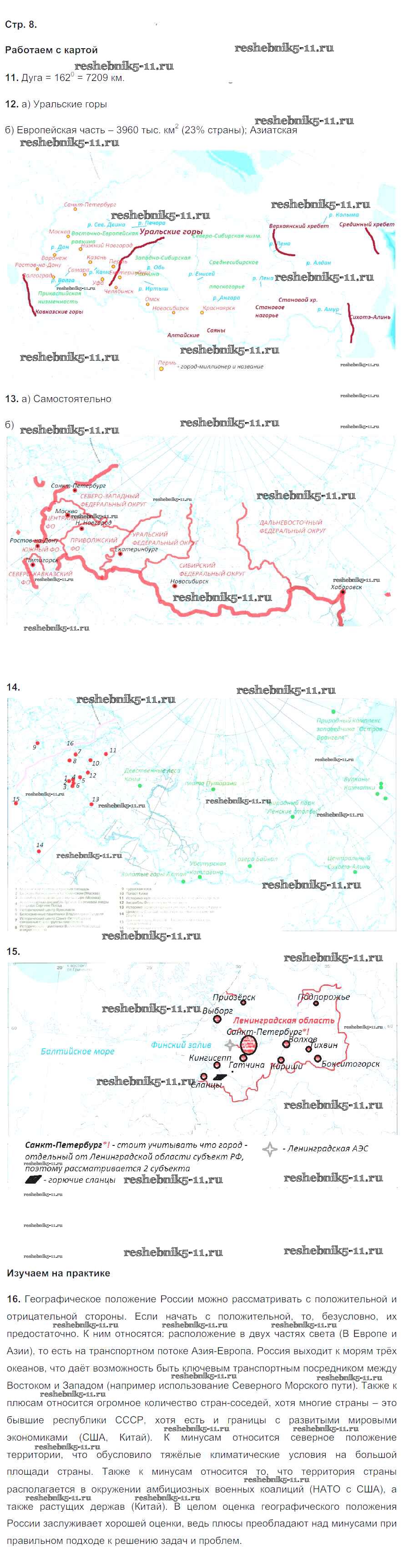 Готовая домашняя работа с ответами по Географии за 8 класс Николина Мой тренажёр Полярная звезда Просвещение 2016 ФГОС - Страницы 8