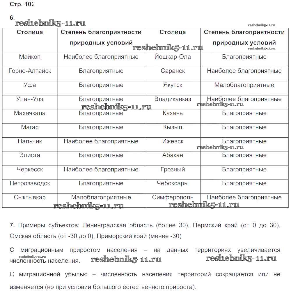 Готовая домашняя работа с ответами по Географии за 8 класс Ольховая, Банников Тетрадь-тренажер Сферы Просвещение 2016 ФГОС - Страницы 102