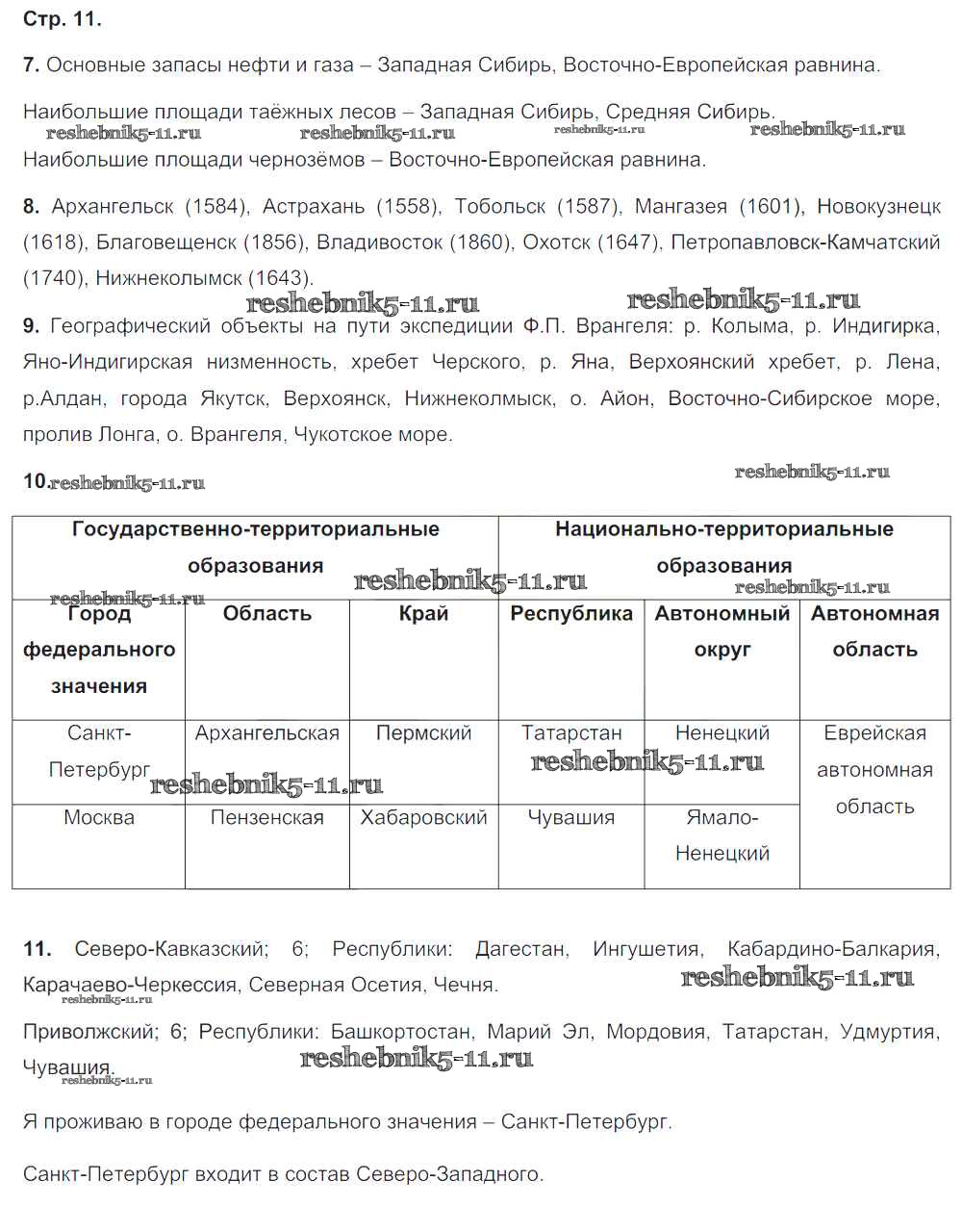Готовая домашняя работа с ответами по Географии за 8 класс Ольховая, Банников Тетрадь-тренажер Сферы Просвещение 2016 ФГОС - Страницы 11