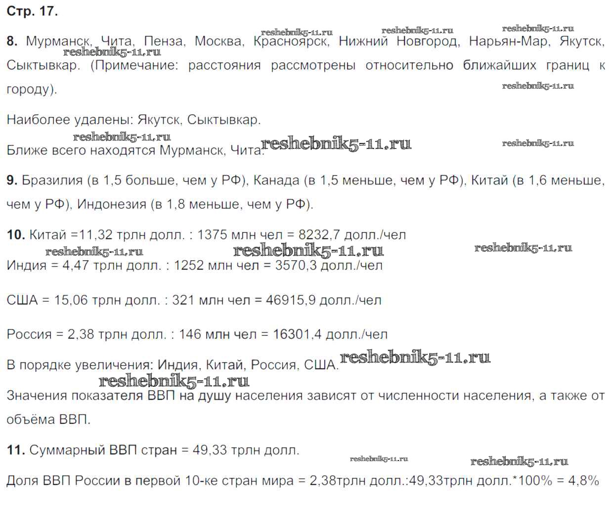 Готовая домашняя работа с ответами по Географии за 8 класс Ольховая, Банников Тетрадь-тренажер Сферы Просвещение 2016 ФГОС - Страницы 17