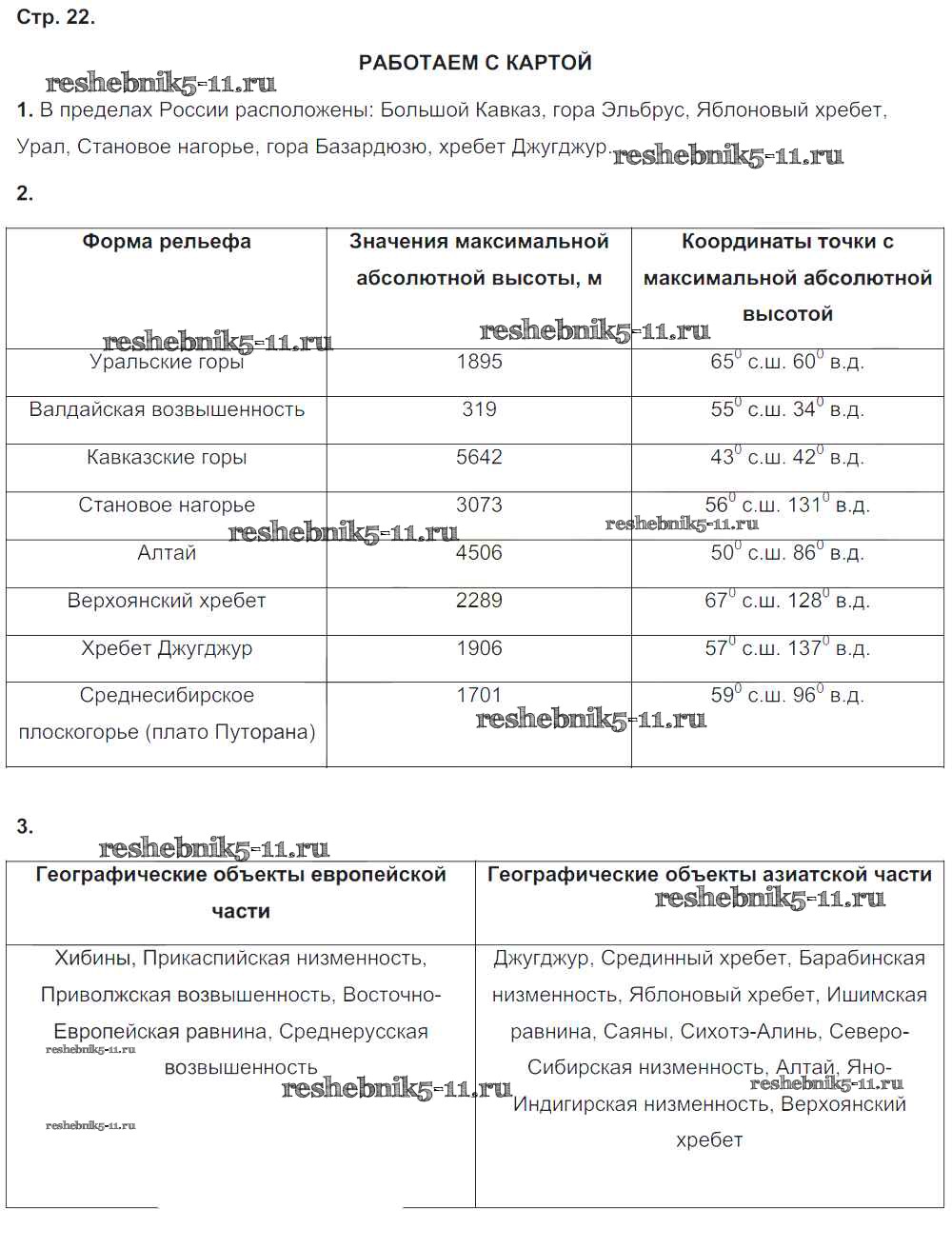 Готовая домашняя работа с ответами по Географии за 8 класс Ольховая, Банников Тетрадь-тренажер Сферы Просвещение 2016 ФГОС - Страницы 22