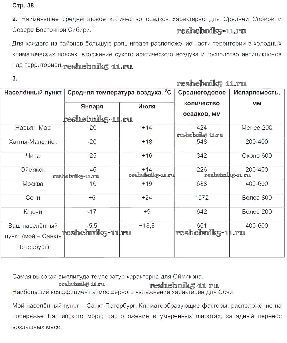Готовая домашняя работа с ответами по Географии за 8 класс Ольховая, Банников Тетрадь-тренажер Сферы Просвещение 2016 ФГОС - Страницы 38