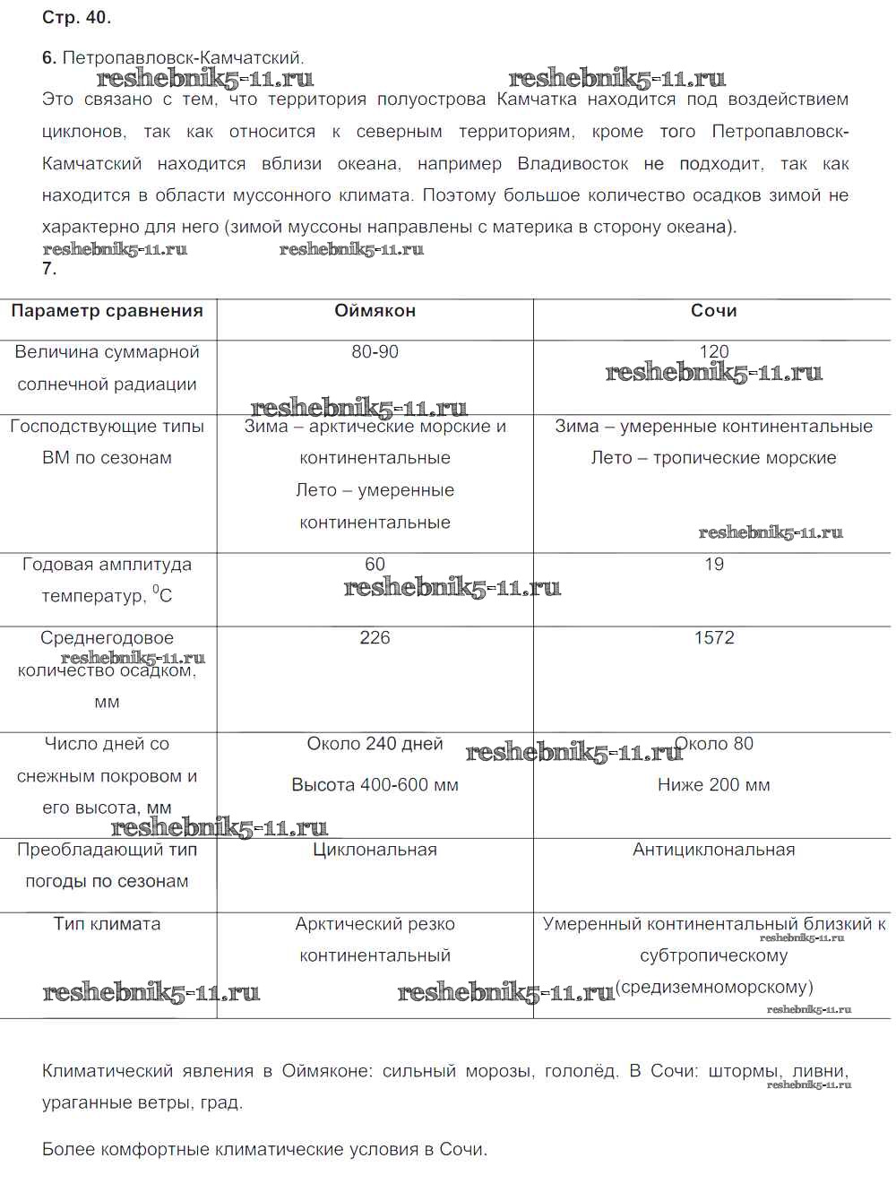 Готовая домашняя работа с ответами по Географии за 8 класс Ольховая, Банников Тетрадь-тренажер Сферы Просвещение 2016 ФГОС - Страницы 40