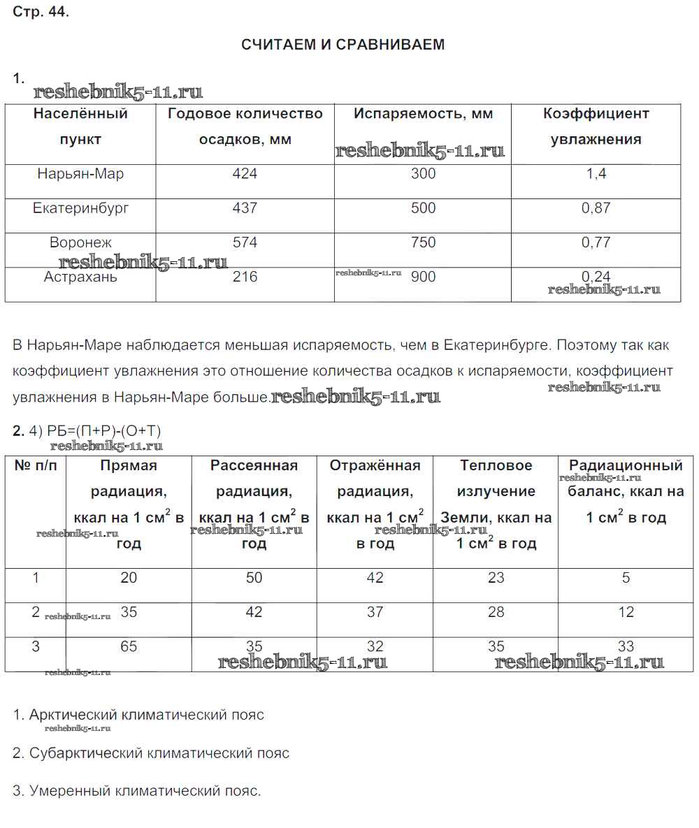 Готовая домашняя работа с ответами по Географии за 8 класс Ольховая, Банников Тетрадь-тренажер Сферы Просвещение 2016 ФГОС - Страницы 44