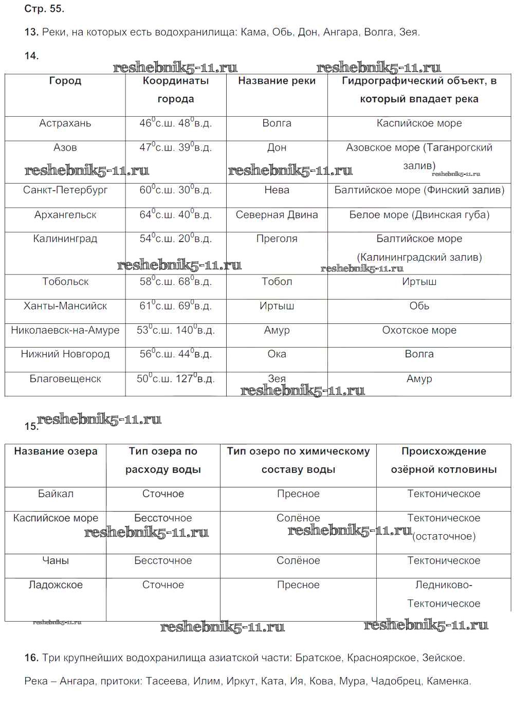 Готовая домашняя работа с ответами по Географии за 8 класс Ольховая, Банников Тетрадь-тренажер Сферы Просвещение 2016 ФГОС - Страницы 55